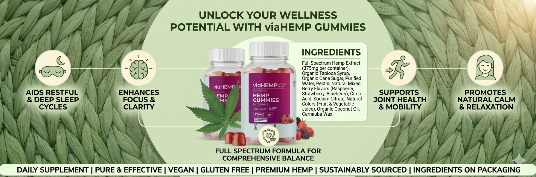 Via HEMP Gummies combine hemp extract with carefully selected plant-based ingredients in a chewable gummy form. Unlike traditional capsules or oils, gummies provide a pleasant taste and easy consumption, making them appealing for people who prefer a simple wellness supplement. The formulation is designed to support relaxation, stress balance, better sleep quality, and general body wellness.
